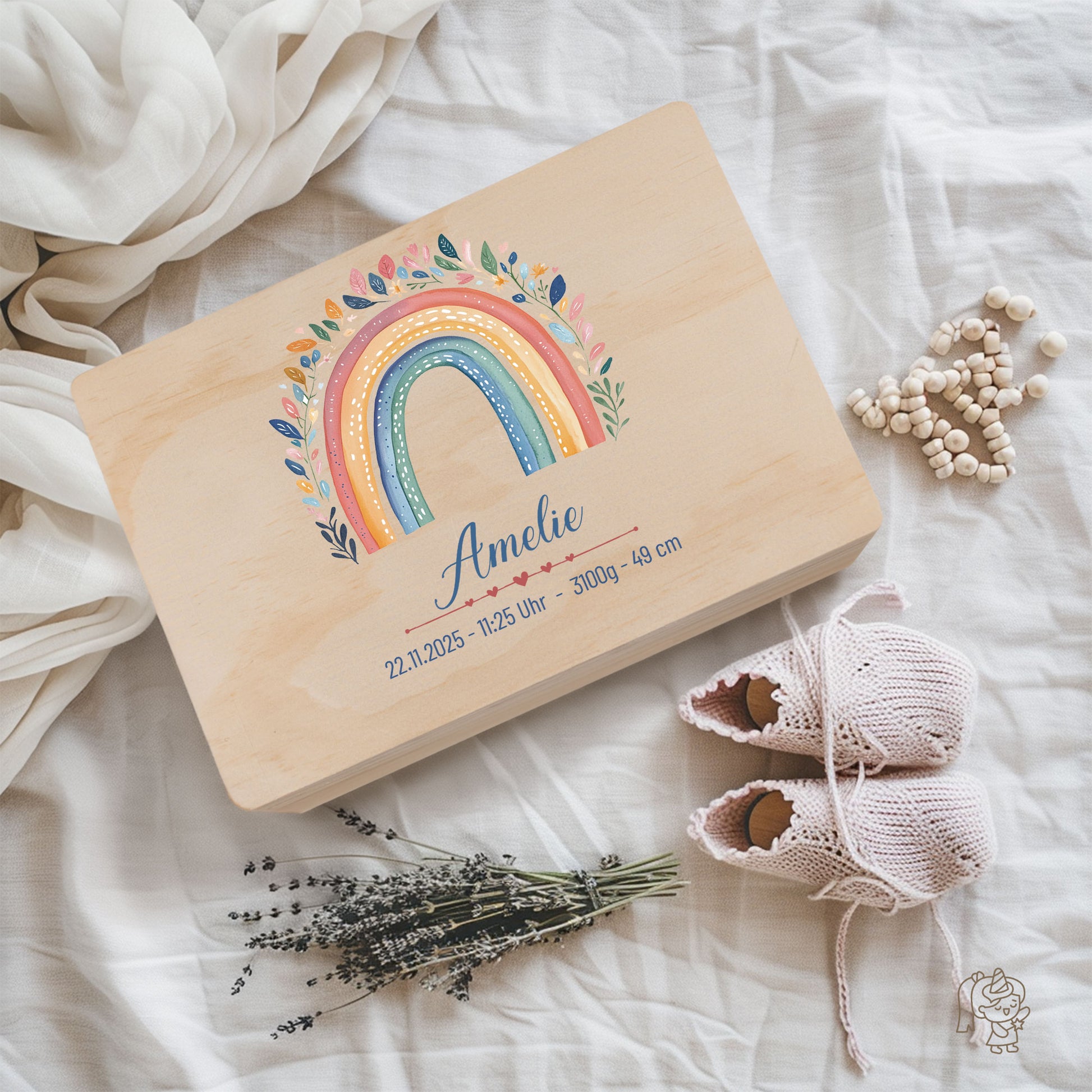 Are you looking for a gift for a newborn that is both beautiful and personal? Then our personalized baby memory box might be just what you’re looking for. The lovingly crafted wooden box with magnetic closure offers space for the most precious keepsakes and is personalized with the child’s name – optionally also with birth date, time, weight, and height. This creates a unique keepsake that will make parents’ hearts beat faster.