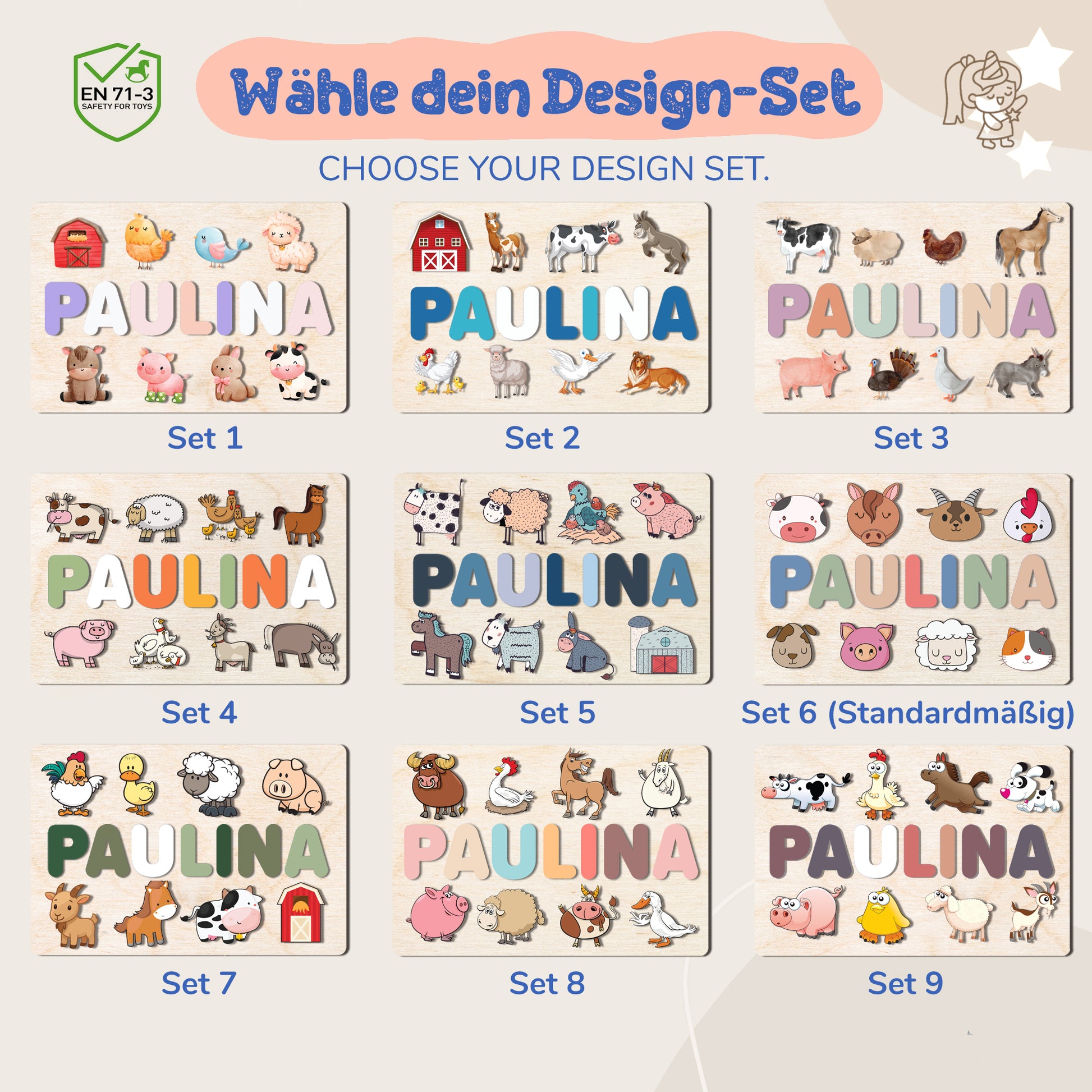 Personalized Wooden Puzzle with Name | Farm | Set 6