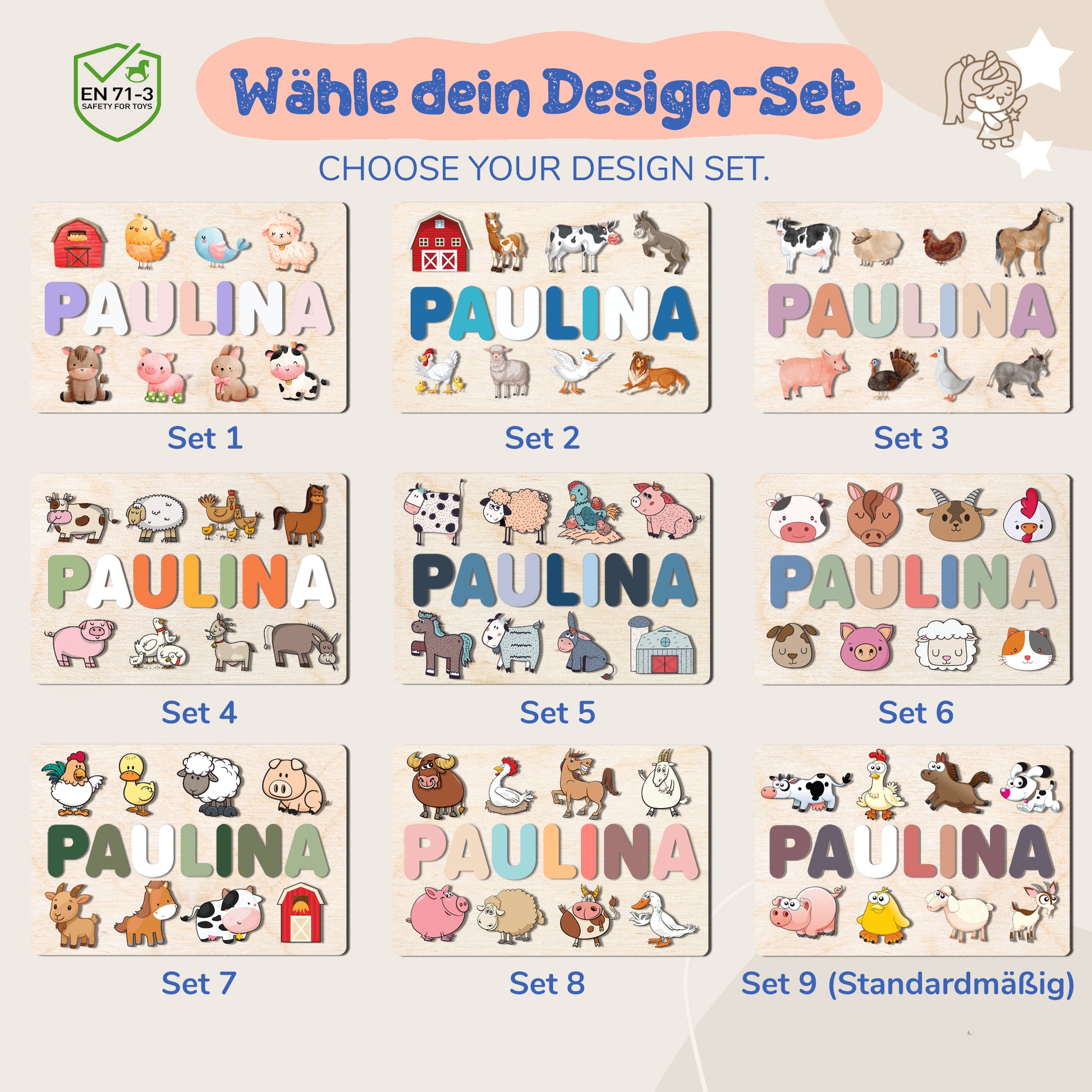 Personalized Wooden Puzzle with Name | Farm | Set 9